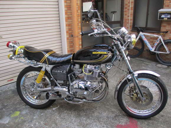 フルメッキ、スポークダブル、H型ワイドリム、ステンレススポーク、カミカゼ管、アップハン、400FOURメーター、マーシャルヘッドライト、380テール、アルフィン、フルメッシュ、などなど